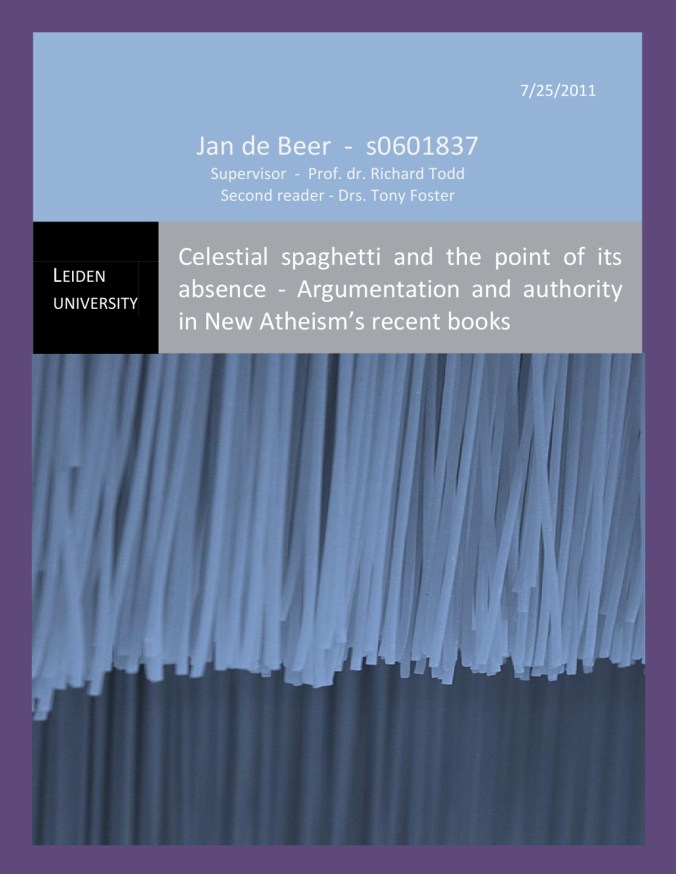 MA Thesis: “Celestial spaghetti and the point of its absence – Argumentation and authority in New Atheism’s recent books”
